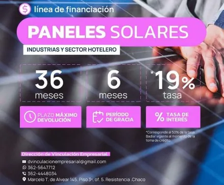 El Gobierno provincial, a través de la Subsecretaría de Industria, Empleo y Comercio del Ministerio de la Producción y el Desarrollo Económico Sostenible, pone a disposición de empresarios industriales y hoteleros chaqueños la línea de asistencia financiera «Chaco + Industria», destinada a la compra de paneles solares, a fin de avanzar en la implementación de energías limpias y renovables en distintos sectores .