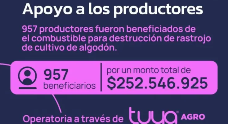 El Ministerio de la Producción y el Desarrollo Económico Sostenible del Chaco, concretó este miércoles 17 de Julio el pago del combustible para que un total de 957 productores puedan avanzar con la destrucción de los rastrojos del cultivo de algodón en sus campos.