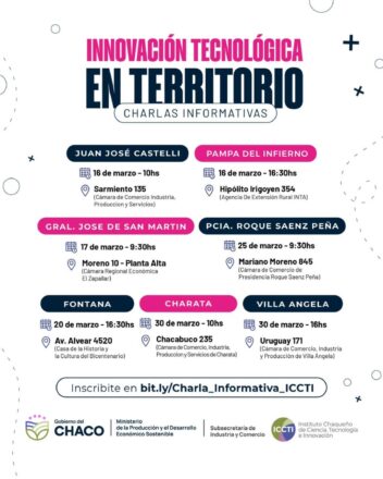 El ciclo de charlas tiene como objetivo que cada participante pueda identificar oportunidades concretas para transformar necesidades productivas en proyectos de innovación con financiamiento. Además, participarán representantes de la Subsecretaría de Industria, Empleo y Comercio del Chaco y del Ministerio de la Producción y el Desarrollo Económico del Chaco, quienes presentarán sus programas y herramientas disponibles.