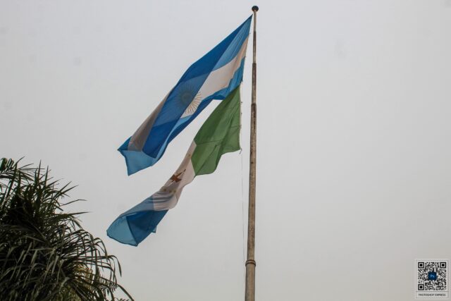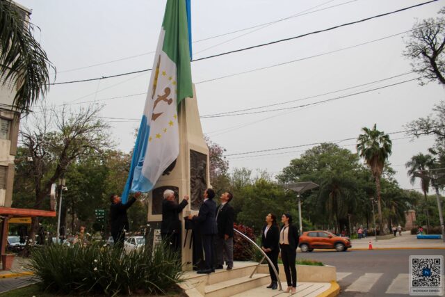 La Municipalidad de Resistencia acompañó la celebración del 17° aniversario de la creación de la Bandera del Chaco. Con la presencia de su creador, Orlando Gadotti, y de personal de la Dirección de Ceremonial y Protocolo comunal, se izaron las enseñas nacional y provincial en el Mástil Mayor.