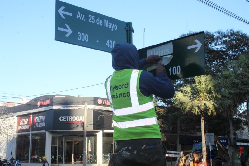 La Municipalidad de Resistencia ejecuta trabajos de pintura de cordones, ochavas y rampas de accesibilidad sobre avenida 25 de Mayo del 100 al 800. Además, se encuentran renovando la pintura de las columnas de iluminación y la cartelería existente.