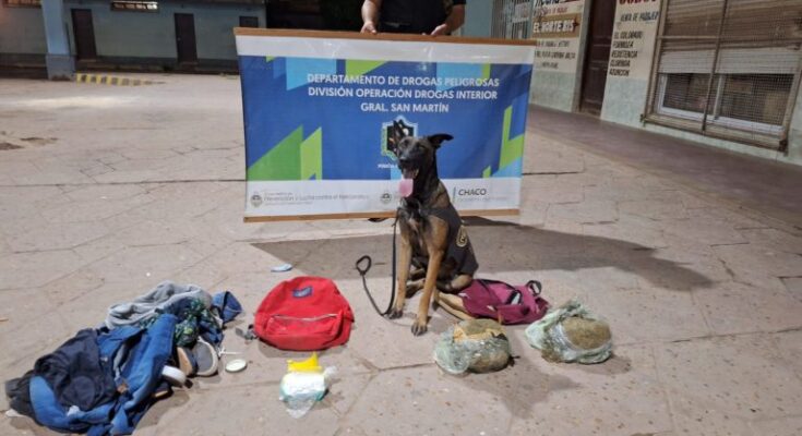 Es así, que mediante el olfato del can, los agentes secuestraron 400 gramos de cocaína, 2.137 gramos de marihuana, un celular y 750 pesos a un ciudadano que se destinaba hacia la ciudad de Resistencia.