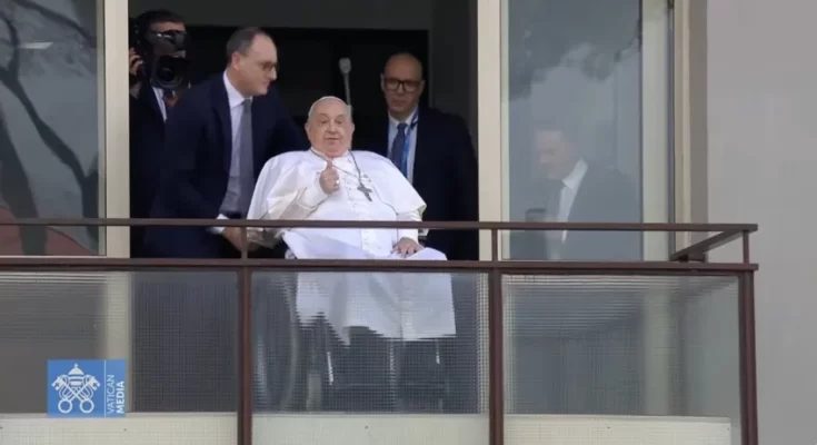 Tras recibir la aprobación médica, el sumo pontífice reapareció en público, desde un balcón del hospital, y a través de un micrófono dijo «¡Gracias a todos!» , dirigiéndose a los espectadores presentes y atentos a su evolución.