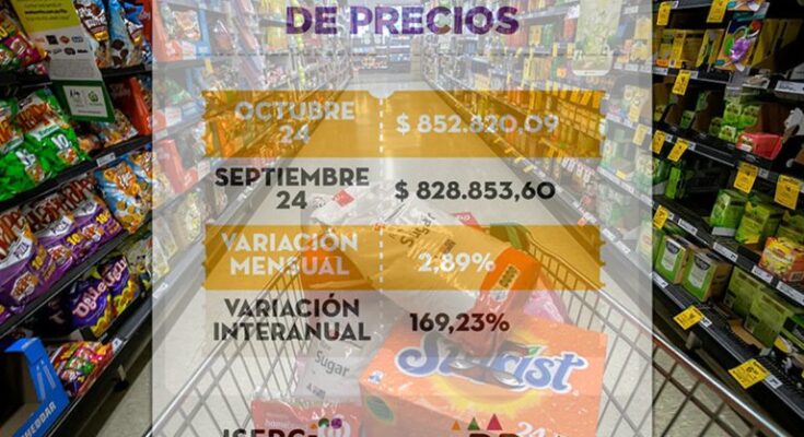 El resultado del informe reflejó una variación mensual del 2,89% en los productos que componen la Canasta Básica Total que llegó a valer $ 852.820, respecto a los $ 828.853 de septiembre. El conjunto de los productos esenciales para vivir tuvo una suba de $ 23.966 con respecto al mes 09.