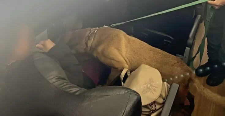 Durante el control efectuado sobre de los pasajeros, el can detector de narcóticos “Hilary” reaccionó de manera exaltada, como habitualmente lo hace ante la presencia de estupefacientes, señalando a una de las pasajeras.