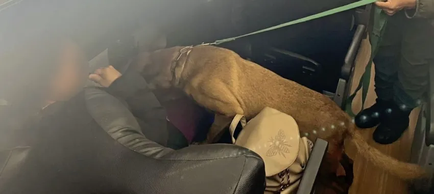 Durante el control efectuado sobre de los pasajeros, el can detector de narcóticos “Hilary” reaccionó de manera exaltada, como habitualmente lo hace ante la presencia de estupefacientes, señalando a una de las pasajeras.
