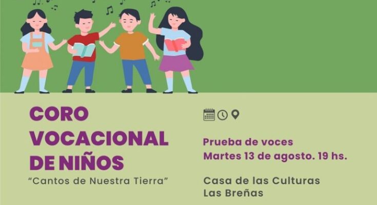 La Casa de las Culturas Las Breñas, dependiente del Instituto de Cultura del Chaco, informa que hasta el martes 13 de agosto hay tiempo para formar parte del coro de niños. La participación es libre y gratuita.