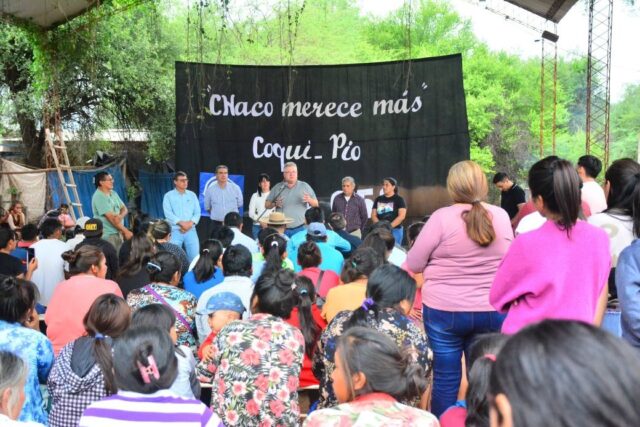 La intendenta Inés Ortega junto a la comunidad de esa localidad dieron la bienvenida donde además celebraron el regreso del lider político que se acercó a escuchar la problemática que aqueja a las comunidades y en donde sobresalió la altas tarifas de la luz las pensiones la inflación y la paralización de Obras fundamentales para la región como la pavimentación de la ruta del Impenetrable»