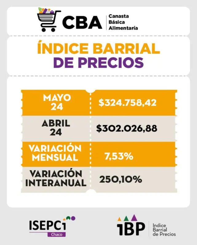 El Instituto de Investigación Social, Económica y Política Ciudadana (ISEPCi), brindó los datos de Índice Barrial de Precios y demostró que en mayo de 2024 hubo un incremento superior al 10% en la Canasta Básica Total. El relevamiento fue realizado en los diferentes comercios barriales del Gran Resistencia y Sáenz Peña.