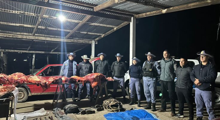 Se activó un operativo cerrojo en la zona con el objetivo de dar con los implicados y se investiga la procedencia de los productos cárnicos. El vehículo y los elementos secuestrados quedaron a disposición de la justicia.
