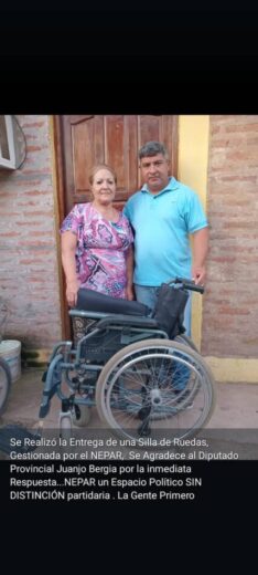Esta tarde, se llevó a cabo la entrega de una silla de ruedas gestionada por el espacio político local NEPAR, en una acción que destaca por su compromiso con la comunidad y la rápida respuesta ante situaciones urgentes. La silla fue entregada a una familia que, a través de este gesto, encontró un alivio significativo en medio de una necesidad imperiosa.