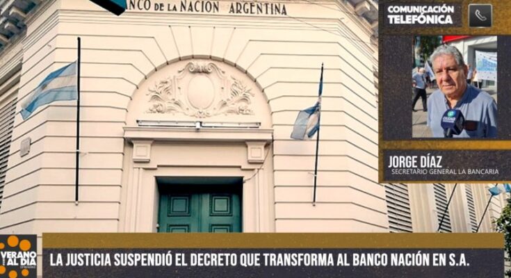 El secretario General de la delegación chaqueña de la Asociación Bancaria, Jorge Díaz, dialogó con CIUDAD TV luego de darse a conocer el fallo que suspende el decreto que transformaba al Banco Nación en sociedad anónima. Aseguró que desde el sector bancario, tomaron la medida “con beneplácito porque es un acto que va de acuerdo con los planteos que hacemos. Es inviable el decreto del Presidente de la Nación, dado que toda modificación de la que pueda ser objeto el status jurídico del Banco Nación tiene que pasar por una ley del Congreso”, aseguró.