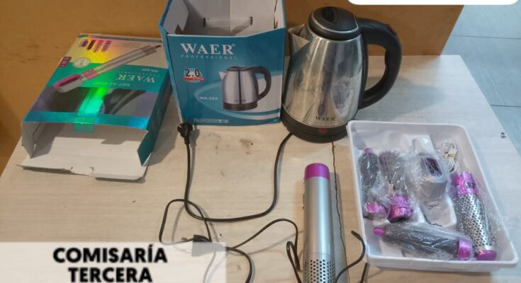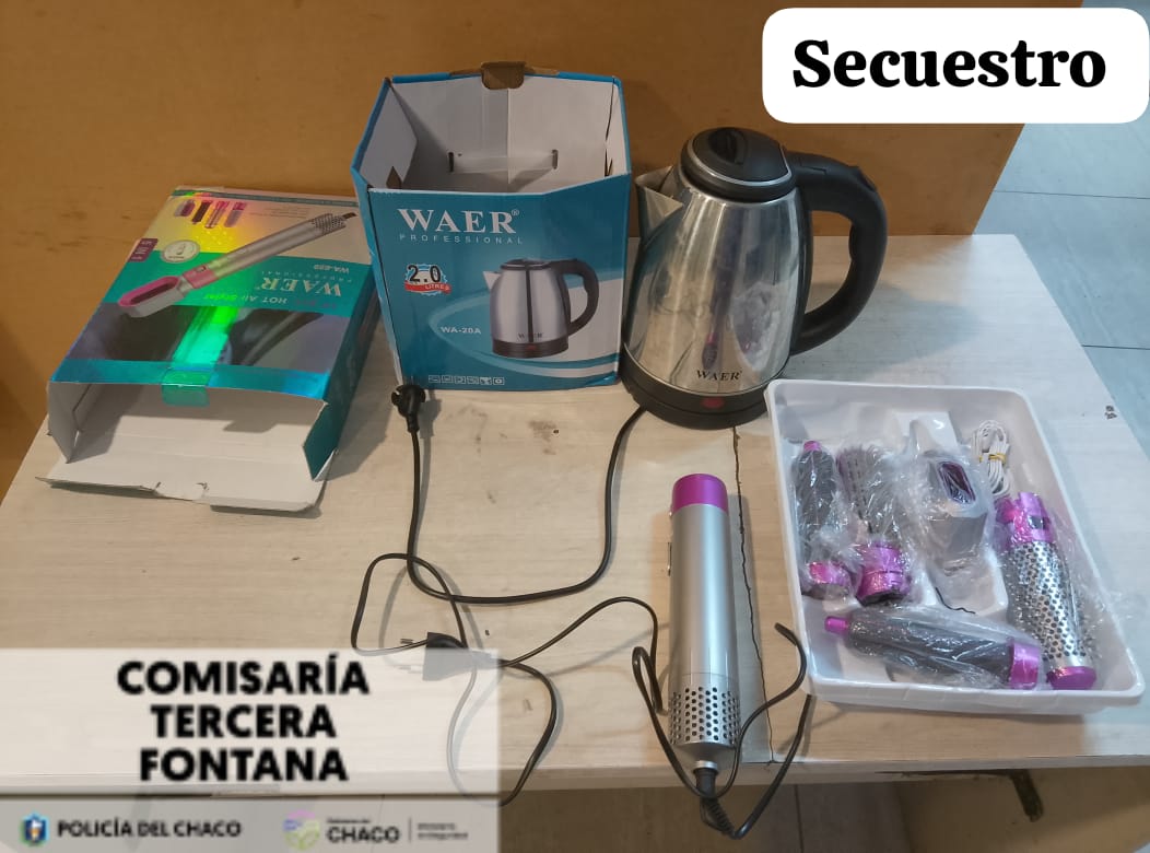 En el lugar se secuestraron un secador de pelo profesional y una pava eléctrica, artículos cuya procedencia el sujeto no pudo acreditar. Se realizó un rastrillaje por la zona para ubicar a posibles damnificados, aunque sin resultados positivos.