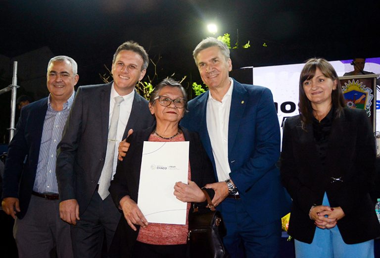 Durante el acto, el Gobierno provincial, a través de Instituto Provincial de Desarrollo Urbano y de Vivienda (IPDUV), entregó títulos a familias que, en algunos casos, esperaron por más de 40 años su propiedad, consolidando así su derecho legal sobre los terrenos que habitan y avanzando en la regularización dominial de la ciudad.