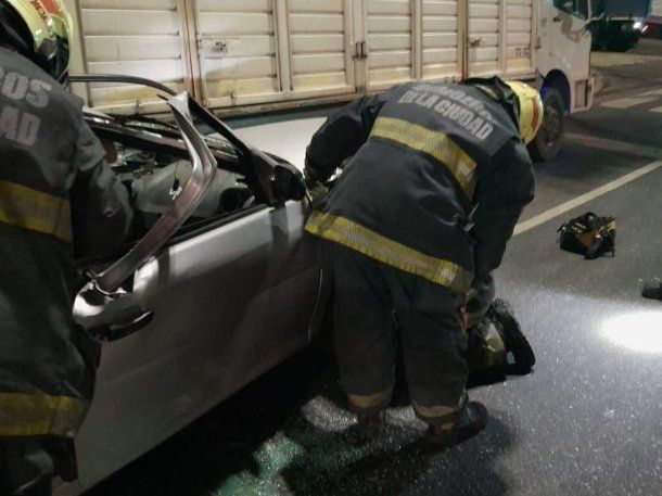 Por su parte, al conductor del Volkswagen Gol, un joven del 30 años, se le cayó su teléfono celular en el área de apoya pies del acompañante y se agachó para agarrarlo. En ese instante, perdió el control del auto, que se desvió con rapidez hacia la izquierda y terminó incrustado debajo del acoplado del camión.