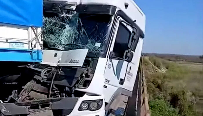 A las 13:00 horas de este miércoles se produjo un fuerte choque entre camiones sobre la Ruta Nacional N° 11, altura del puente sobre el Arroyo “El Toba”, jurisdicción Malabrigo. Los protagonistas choferes son un vecino de Reconquista y otro de la capital chaqueña.