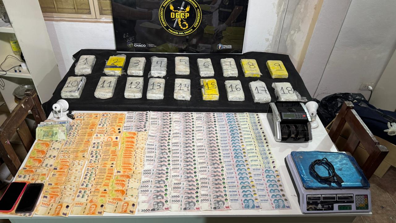 Durante las medidas judiciales se incautaron 18 “ladrillos”, 45 bolsas y 66 “bochitas” con un pesaje en total de 19 kilos y 438,2 gramos de cocaína; 18 gramos de marihuana, una considerable suma de dinero en efectivo, balanzas digitales, celulares, recortes de polietileno utilizados para el fraccionamiento, una máquina para contar billetes, dos motos, una camioneta y un auto, entre otros elementos de interés para la causa.