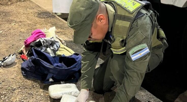 Al momento de la inspección de la bodega del rodado, el can detector de narcóticos “Olivia” reaccionó sobre un bolso, por lo que procedieron a su apertura y hallaron cuatro paquetes rectangulares con sustancia vegetal en su interior de similares características a la marihuana.