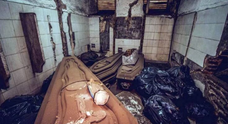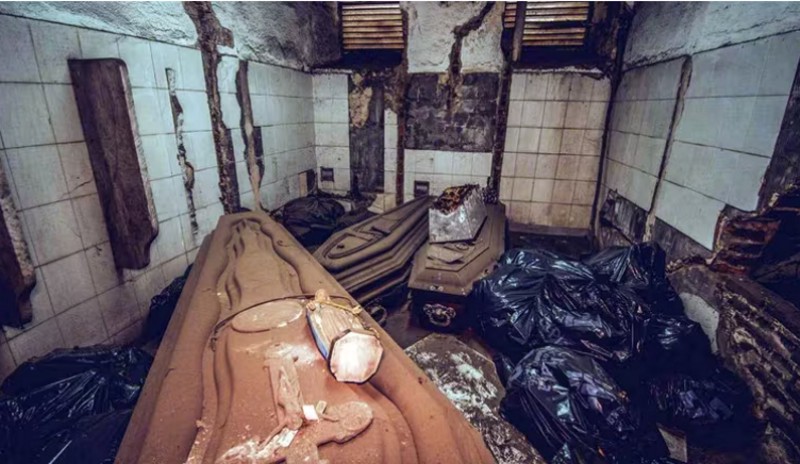 Según explicaron fuentes oficiales, la cuenta de 13 mil cadáveres se hizo a través del cálculo de los ataúdes encontrados, los restos óseos, las bolsas que no se habían desgarrado, y la capacidad de los depósitos. “Están llenos, en algunos no se puede ni transitar por dentro. Hubo que meter las cámaras por las claraboyas del techo. Había restos óseos apilados los 2,20 metros”, detallaron.