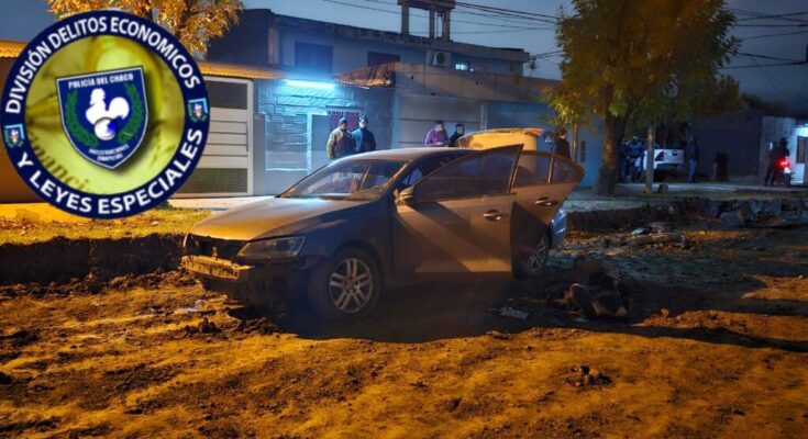 Al pasar un par de minutos vieron el rodado el cual circulaba por Leandro N. Alem y al llegar cerca de donde estaban el personal policial huye siendo seguido hasta que en calle Miguel Delfino dobla y al 1150 aproximadamente, embiste un montículo de tierra que marcaba el límite de la obra de pavimentación de la arteria.