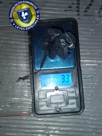 En el interior incautaron un hierro tipo ganzua y envoltorio con 3,3 gramos de cannabis; sustancia que fue examinada y pesada por personal del Departamento Consumos Problemáticos.