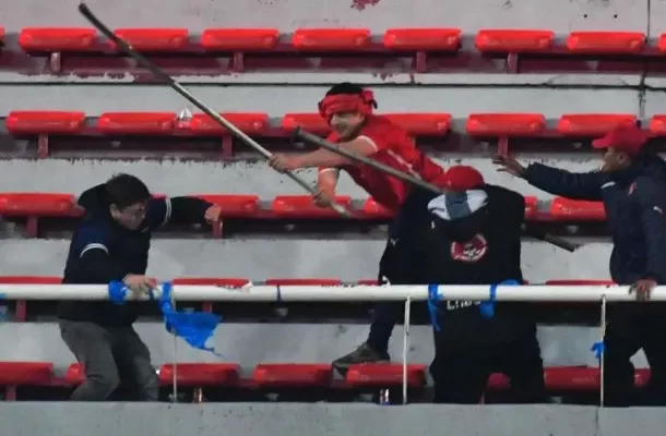 Lo que comenzó con el cruce de proyectiles rápidamente derivó en una batalla campal que obligó a la Conmebol a suspender el encuentro. El episodio más estremecedor se produjo cuando un grupo de barras del club argentino logró atravesar una reja y avanzar hacia el sector donde estaban los simpatizantes chilenos.