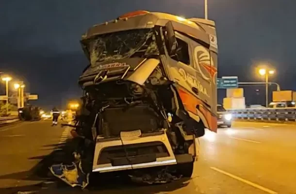 El impacto fue tal que ambos vehículos quedaron destrozados. El colectivo, que afortunadamente no llevaba pasajeros, terminó volcado sobre la autopista, en tanto que el camión terminó 200 metros más adelante, con la cabina completamente rota.