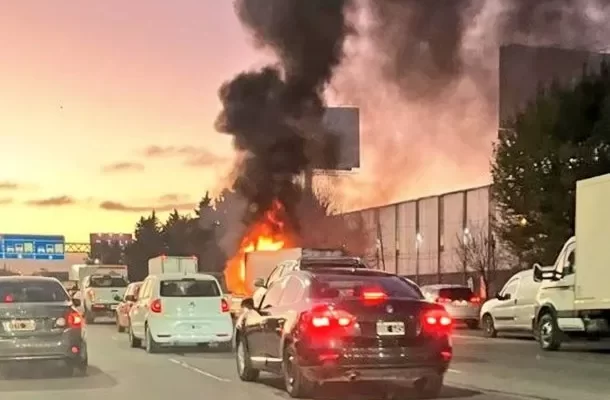 Un camión se incendio en Panamericana y desató la alarma de los conductores en mitad de la autopista. Las llamas comenzaron en la parte delantera del vehículo de gran porte y desataron una gran columna de humo en las primeras horas de este jueves.