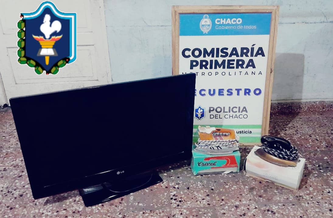 Por ello, el personal del Servicio Externo realizó las tareas investigativas y logró la aprehensión de los sindicados de 25 y 26 años en la calle Arturo Illia al 2.100 aproximadamente. En poder de estos, incautaron una Tv plasma de 32” y dos planchas. Dichos elementos fueron reconocidos por la denunciante y se los restituyeron.