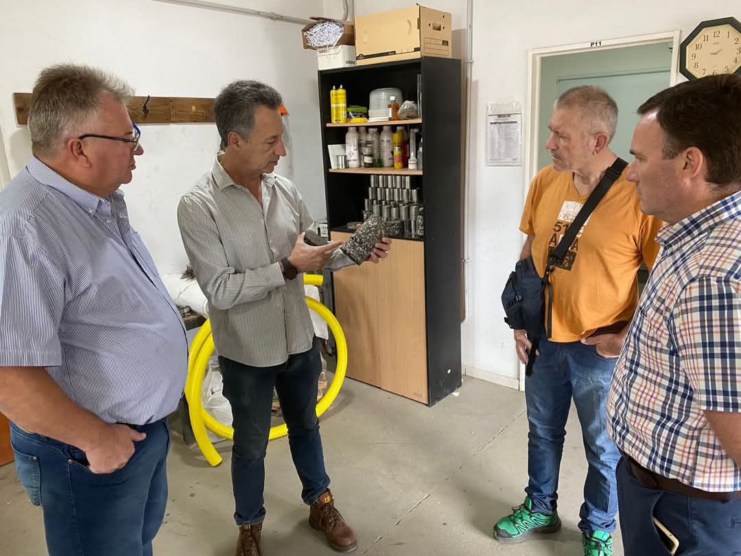👉En un esfuerzo por mejorar la infraestructura vial y garantizar un tránsito seguro y fluido para los vecinos, el intendente Pío Oscar Sander y el secretario de Gobierno Ismael Pablo Barnes el Secretario de Ambiente Enzzo Ferrari visitaron la fábrica AFEMA S.A. para explorar la posibilidad de adquirir material de bacheo innovador.