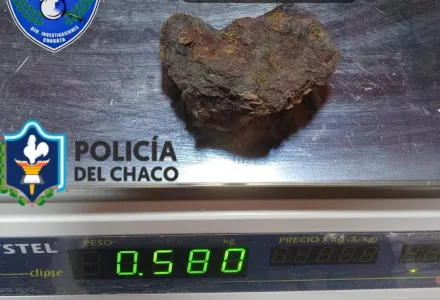 A partir de las tareas investigativas, los agentes lograron ubicar un domicilio en el barrio La Curva de Charata, donde se llevó adelante el procedimiento. En el lugar, se secuestró una pieza pétrea de características compatibles con un meteorito, de entre 10 y 15 centímetros, color oscuro y con un peso aproximado de 580 gramos.