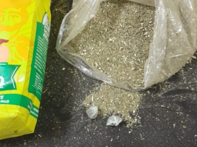 Al revisar un paquete de yerba de un kilogramo, los efectivos detectaron signos de haber sido abierto y vuelto a cerrar de manera irregular. Al volcar su contenido, hallaron dos envoltorios de polietileno con una sustancia vegetal de color verde amarronado y olor similar a marihuana, de pesaje ínfimo.