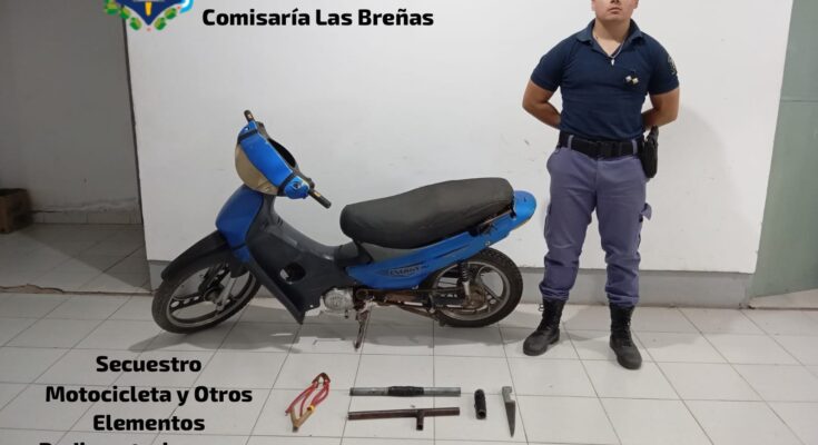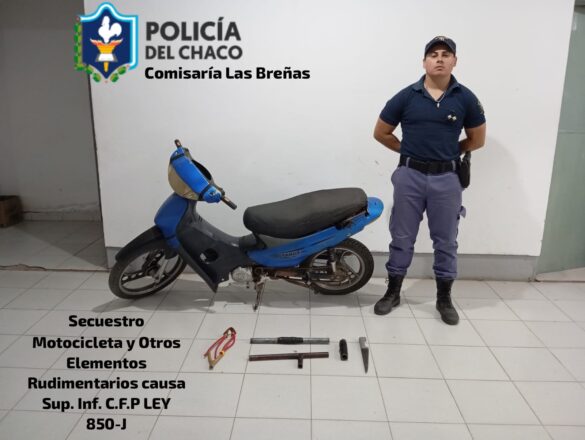 En el lugar, procedió al secuestro de una gomera de fabricación rudimentaria, un cuchillo y dos armas caseras tipo tumbera. Como asi también, una motocicleta Corven Energy 110 cc, color celeste, sin numeración visible