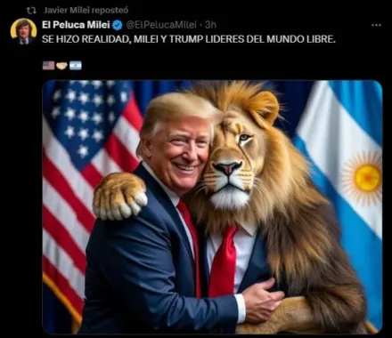 Luego de eso, Milei fue reposteando varios mensajes y fotos de distintos usuarios que hacían referencia a la relación entre él y Donald Trump. Uno de los posteos compartidos por el presidente argentino fue una foto de Trump con un león. «SE HIZO REALIDAD, MILEI Y TRUMP LIDERES DEL MUNDO LIBRE», decía el mensaje.