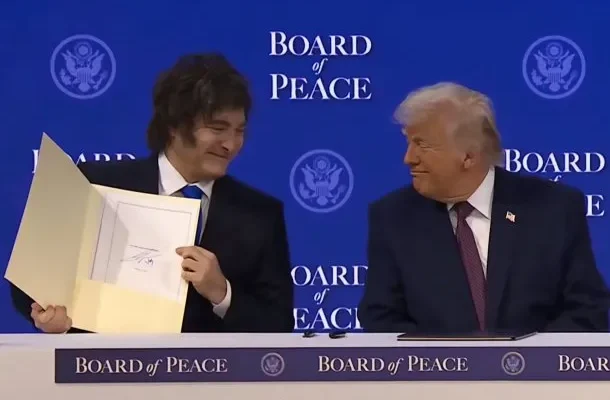 Milei llegó a Washington ayer por la tarde acompañado por el canciller Pablo Quirno y su hermana y secretaria general de la Presidencia, Karina Milei, con el propósito de participar hoy de la sesión inaugural del Consejo de Paz, el órgano que creó Trump para socavar el multilateralismo y a la Organización de Naciones Unidas (ONU) y en el que se autoimpuso como presidente vitalicio con poder de veto.