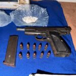 También se encontró en una de las habitaciones una pistola calibre 9 milímetros, con cargador y diez cartuchos del mismo calibre.