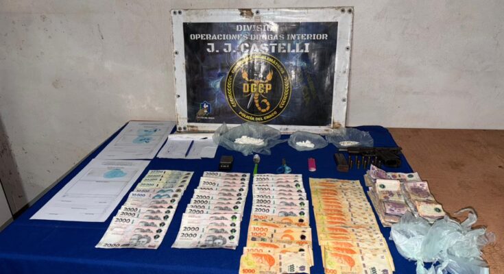 Personal de la División Operaciones Drogas Interior de Juan José Castelli, llevó adelante un allanamiento que culminó con el secuestro de estupefacientes, dinero en efectivo, celulares, un arma de fuego y la aprehensión de dos hombres.