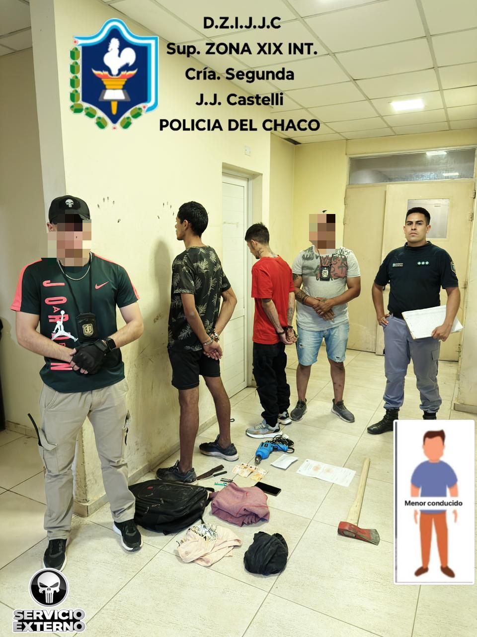 Al llegar al lugar, los uniformados interceptaron a tres sujetos de 25, 22 y 16 años. En su poder tenían no solo la mochila y las prendas denunciadas (camperas Nike, zapatillas Irun, entre otras), sino también herramientas como un hacha y un taladro de impacto que no pudieron justificar.