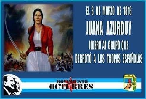 El 3 de marzo de 1816 la heroína boliviana Juana Azurduy de Padilla, al frente de 200 mujeres indias a caballo, derrota a las tropas españolas en Bolivia, libera a su esposo el general Manuel Ascensio Padilla que estaba prisionero desde 1814 y es nombrada teniente coronel, siendo así la primera mujer con rango militar en el mundo.
