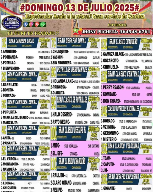 Este domingo 13 de julio de 2025, el turf argentino vivirá una jornada inolvidable en el Hípico La Diosa de Tres Isletas. Con la participación de destacados ejemplares provenientes de Formosa, Corrientes, Entre Ríos, Misiones y el propio Chaco, la jornada promete ser una verdadera fiesta del deporte hípico regional.