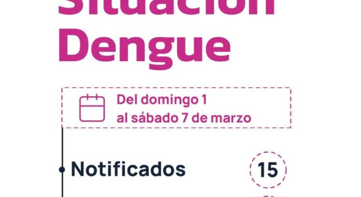 El Ministerio de Salud informó el parte epidemiológico correspondiente a la semana comprendida entre el domingo 1 y el sábado 7 de marzo. Durante ese período, se registraron 15 casos notificados, los cuales fueron analizados y de acuerdo con los resultados, no se confirmaron casos positivos de Dengue, ni se reportaron casos probables.