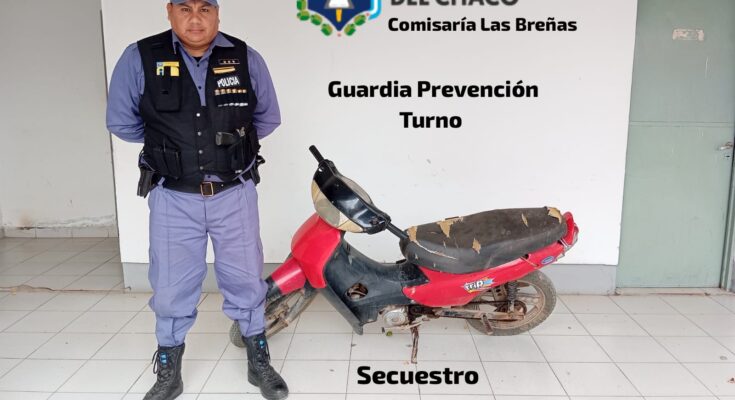 Alrededor de las 8:30 de este viernes, los efectivos de la Comisaría Las Breñas recibieron un llamado de un vecino del barrio Ex Quinta Ruiz, manifestando que dos hombres arrastraban una motocicleta 110.