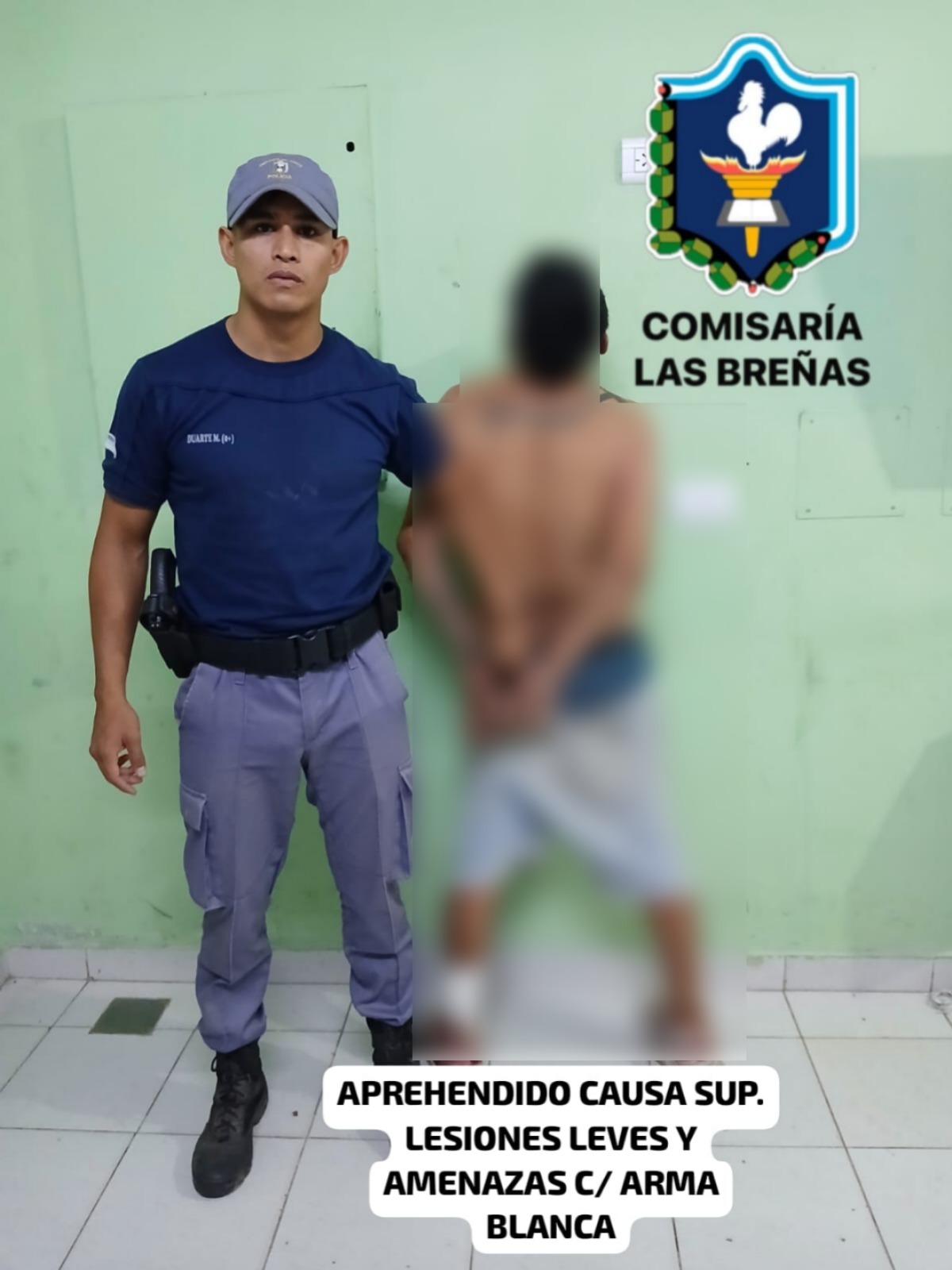 fue aprehendido durante esta madrugada en la localidad de Las Breñas, acusado de provocar desorden, amenazar y lesionar a personas con un arma blanca.