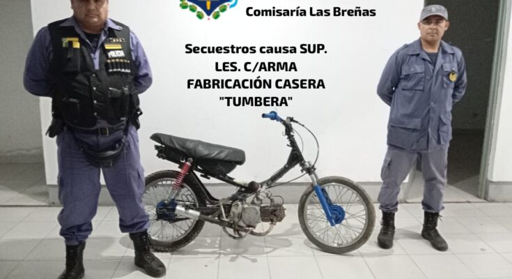 Ante esta situación, el personal de la Comisaría Las Breñas inició las investigaciones y logró identificar a los presuntos autores, ambos menores de 16 años. Con esta información se montó un operativo que permitió secuestrar la motocicleta utilizada y un arma casera tipo “tumbera”, que se encontraba en poder de tres menores de 16 y 17 años.