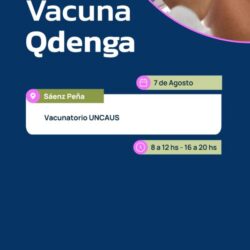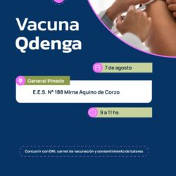 Mientras que en General Pinedo se llevará a cabo en la Escuela de Educación Secundaria N° 188 «Mirna Aquino de Corzo» y en Sáenz Peña, en el vacunatorio de la Uncaus.