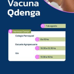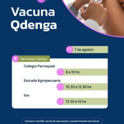 Este 7 de agosto, las sedes de vacunación en Hermoso Campo serán el Colegio Parroquial, la Escuela Agropecuaria y el Itín.