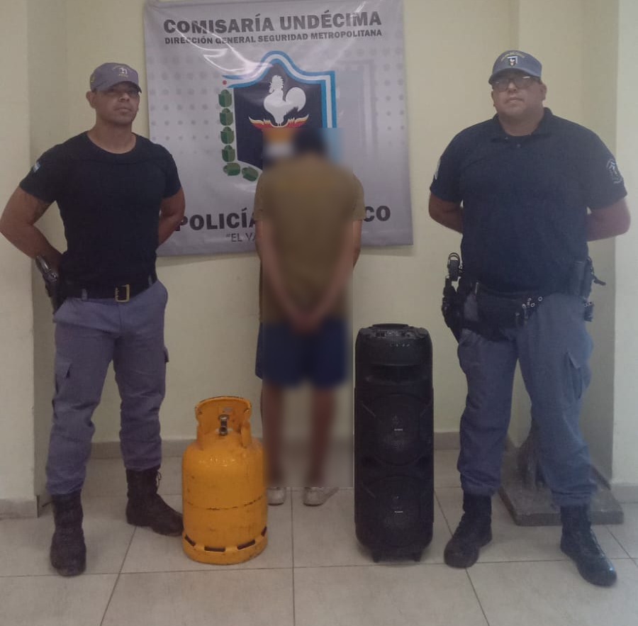 Apenas comenzada la mañana, un joven de 24 años fue demorado en avenida Bertaca al 400. Él había escondido un parlante y una garrafa en unos pastizales sobre avenida Moreno al 2300 y no pudo explicar de dónde los sacó. Fue demorado inmediatamente y al poco tiempo se descubrió la procedencia de los elementos.
