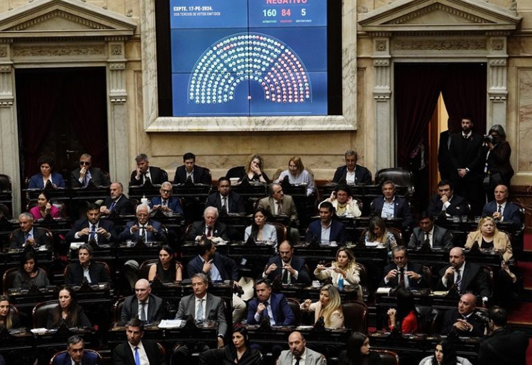 Ausencias y abstenciones fueron claves para el resultado. Con todos los legisladores presentes, el tercio necesario para impedir la insistencia de la ley es de 86, uno más que la cosecha que obtuvo el oficialismo.