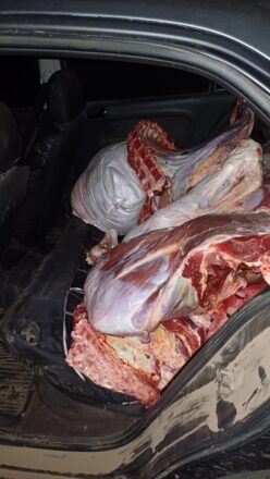 En el camino vecinal de Colonia Benítez, el personal de la Sección Rural Costa Inés interceptó el paso de un Volgwagen Gol Trend que intentó evadir a la prevención. Dos personas bajaron del vehículo y se escaparon por el monte, pero había un tercero en el auto que se quedó con los 500 kilos de carne de dudosa procedencia.