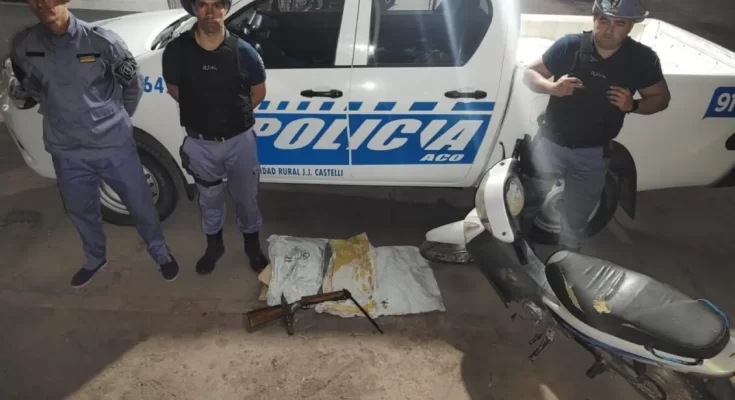 El personal del Departamento de Seguridad Rural, durante un control vehicular rutinario sobre el camino vecinal del paraje mencionado, interceptó una motocicleta marca Corven de 110 cc, color blanco, sin dominio colocado. La motocicleta era guiada por A. A., de 50 años, soltero, jornalero y residente en Paraje La Esperanza, Juan José Castelli. En compañía de A. A. viajaba F. D. F., de 27 años, soltero, instruido, también jornalero y domiciliado en el Barrio Chacra N° 05 de Castelli.